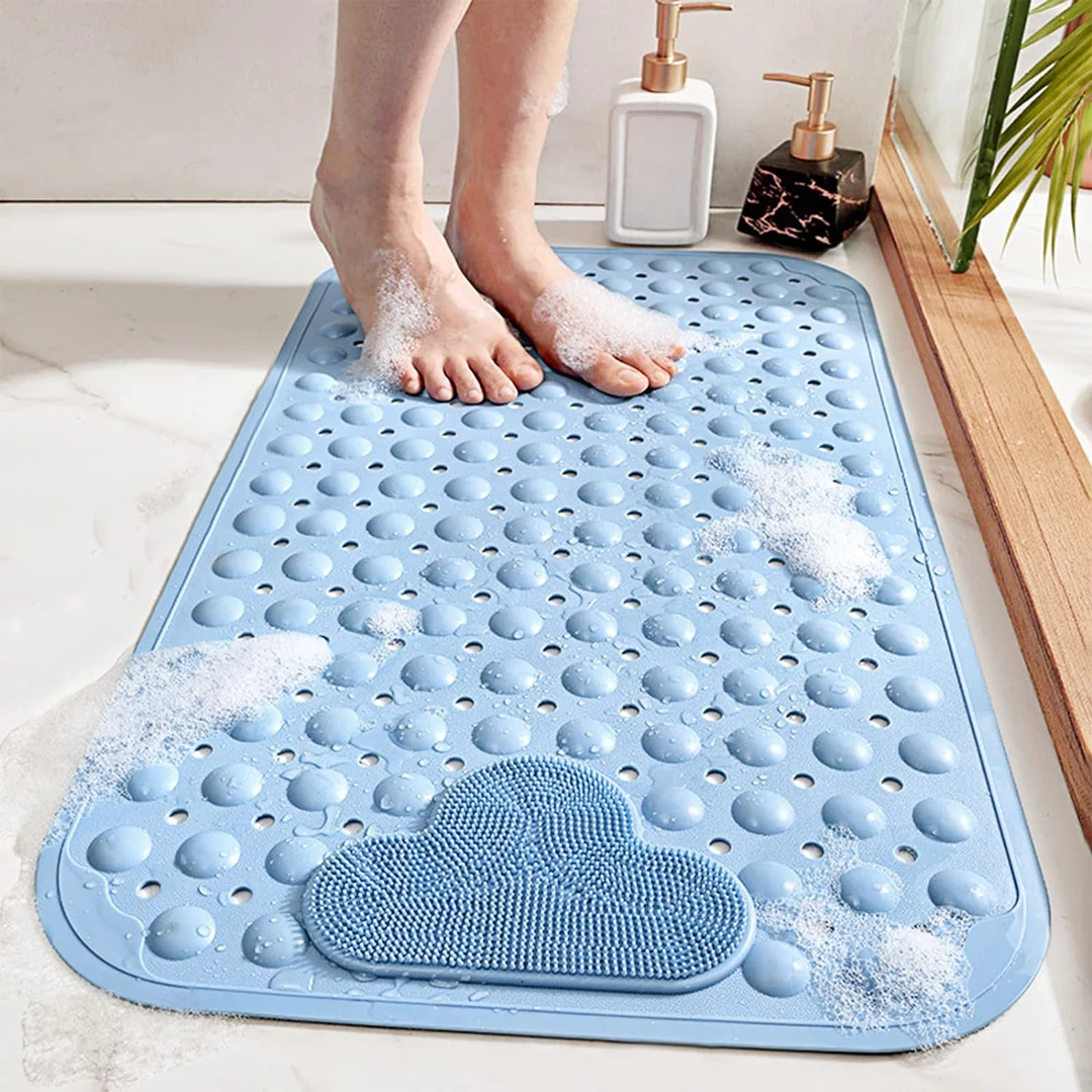 • DOUBLE ANTI-SLIP: The surface of the shower mat has anti-slip texture and comfortable vacuum bubbles, and the bottom is designed with a strong anti-slip suction cup, which firmly adsorbs the floor and prevents displacement, double anti-slip, more secure.